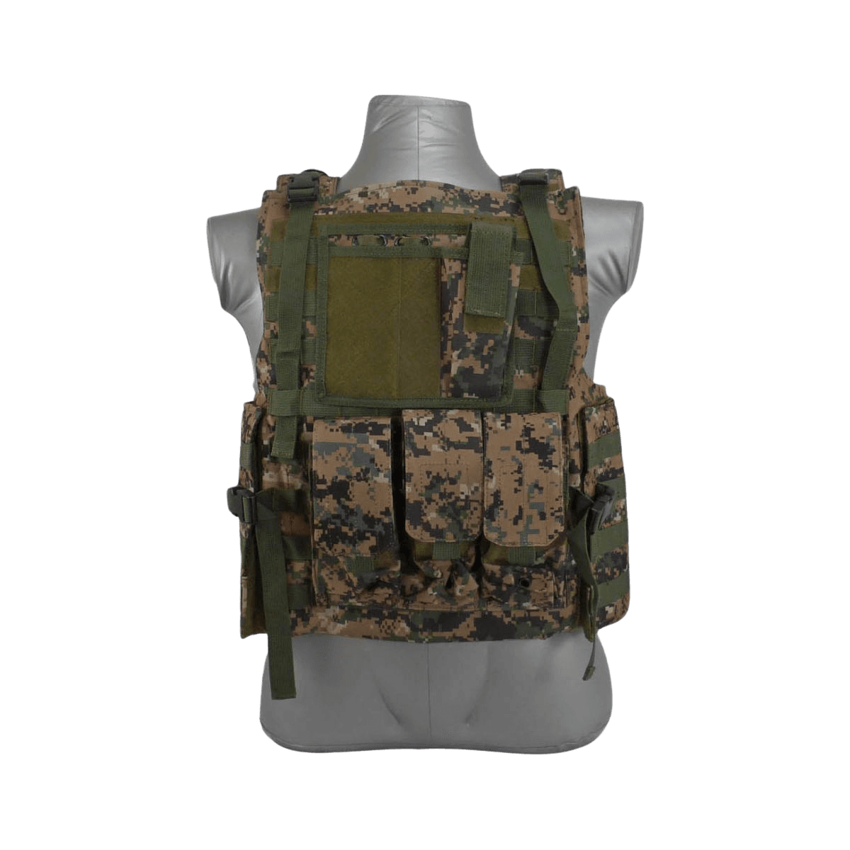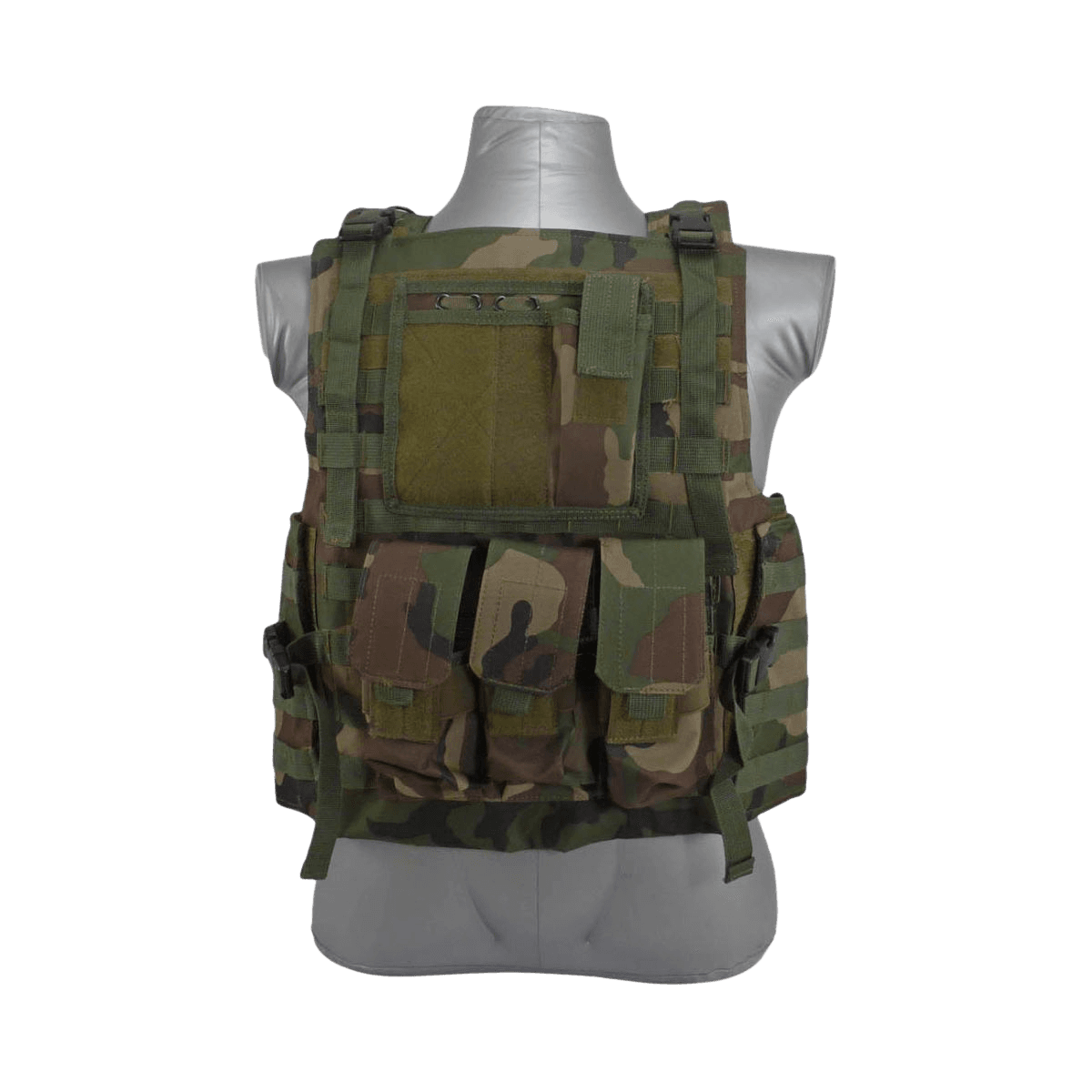 Lightweight MOLLE carrier with adjustable fit and full tactical loadout capacity. Available in black and 3 camo colors.